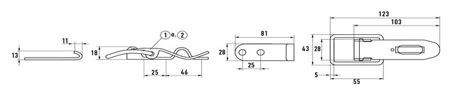 Засувка / Затиск - 2/100, розмір замку 204 х 43 мм, матеріал: оцинкована сталь, нержавіюча сталь.