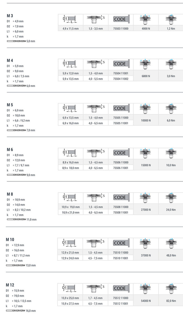 Різьблення: M3 / М4 / М5 / М6 / М8 / М10 / M12