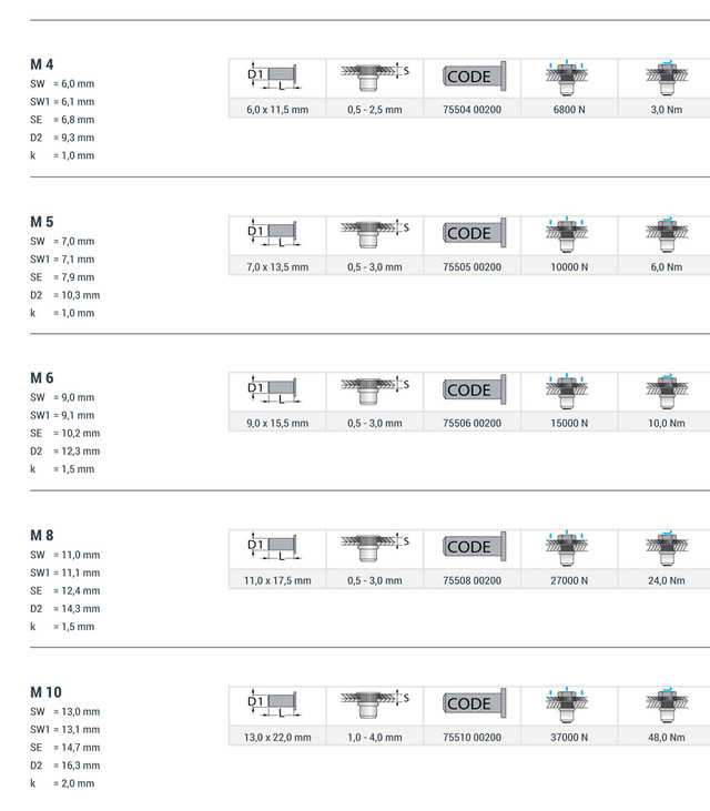 Заклепка-гайка полушестигранная з плоским буртиком М4, М5, М6, М8, М10;