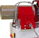 Самоцентруючийся призмовий затискач надійно утримує трубу. З допомогою великого храпового механізму (трещотки) затискач швидко відкривається і закривається вручну. Моделі MFS-24 і MFS-30 в серійному виконанні оснащені електроприводом для призменного затиску.